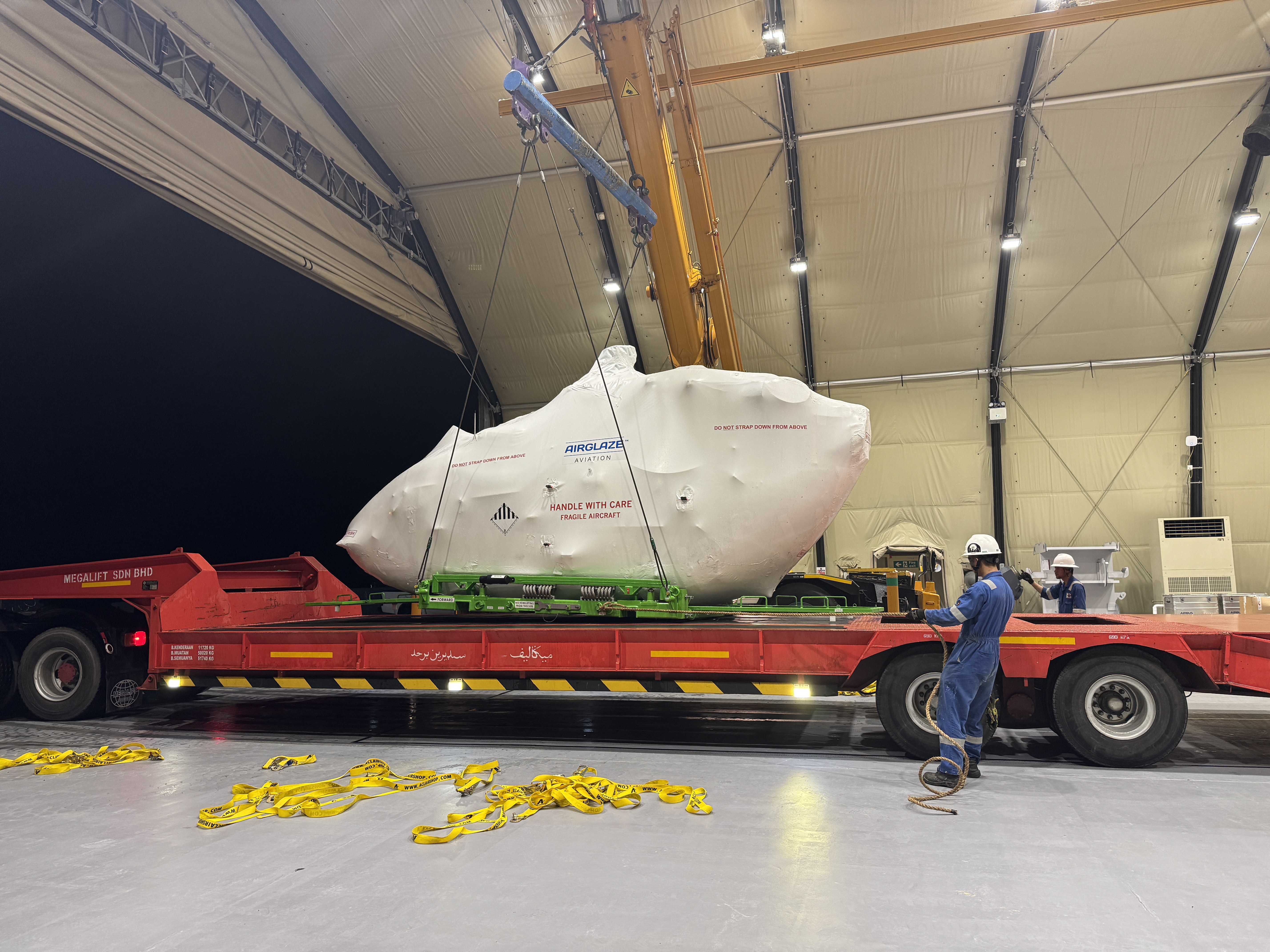Workscope done 21 February 2026. On behalf of Glamco Aviation, Megalift lifting and transported 2 military helicopter from Brunei